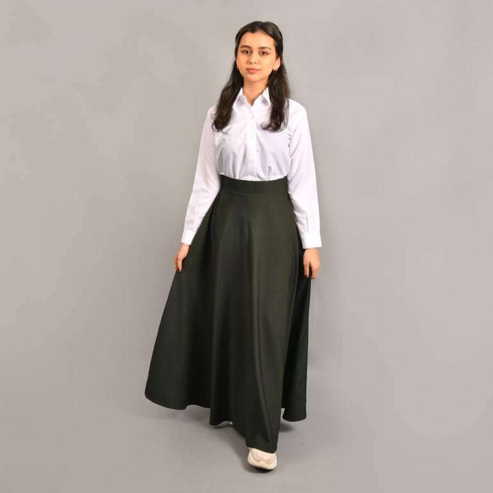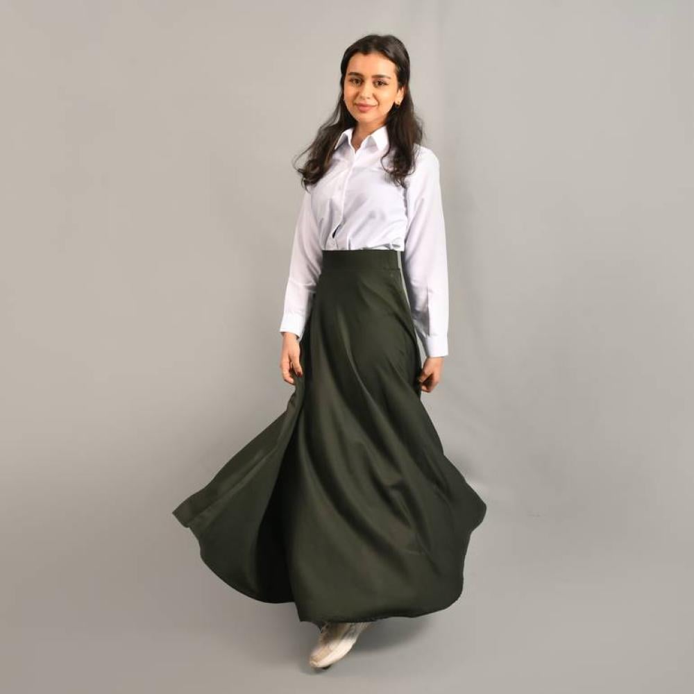 تألقي بإطلالة أنيقة وجذابة مع تنورتنا الزيتية الكلوش المصممة بقصة فرنسية مميزة. تتميز هذه التنورة بجيوب مخفية وسحاب إغلاق جانبي لإضافة لمسة من العملية والراحة. مصنوعة من قماش كريب تايواني فائق الجودة، مما يضمن لك الراحة والمتانة في كل ارتداء.