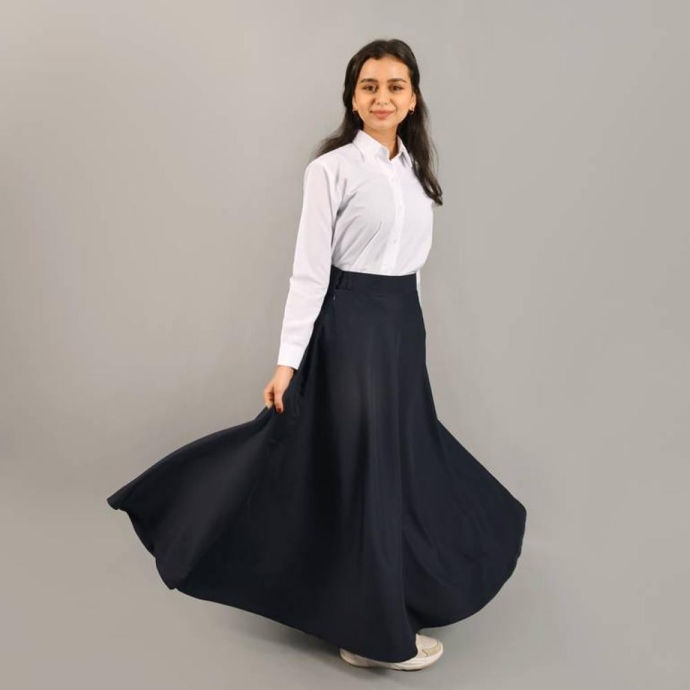 تميزي بإطلالة أنيقة وجذابة مع تنورتنا الكحلية الكلوش المصممة بقصة فرنسية مميزة. تتميز هذه التنورة بجيوب مخفية وسحاب إغلاق جانبي، مما يضيف لمسة من العملية والراحة. مصنوعة من أقمشة فاخرة وبخياطة متقنة، تضمن لك الراحة والمتانة في كل ارتداء.