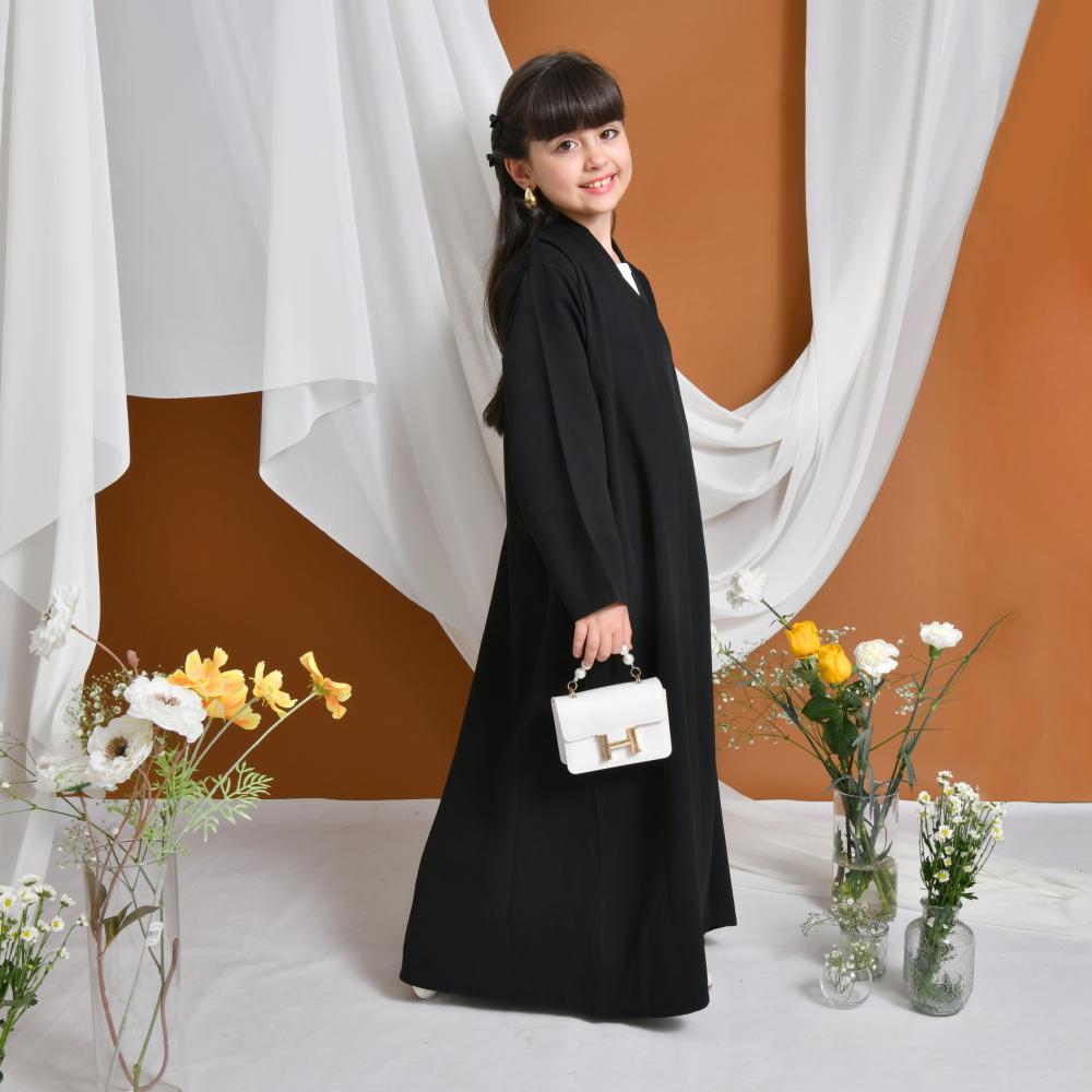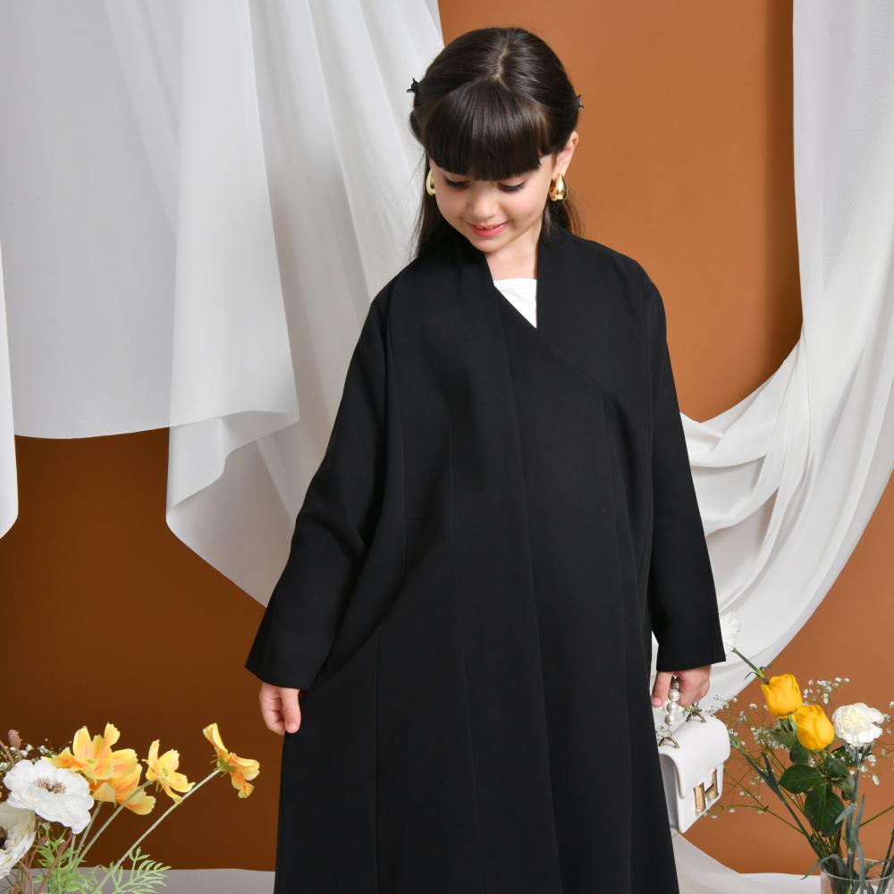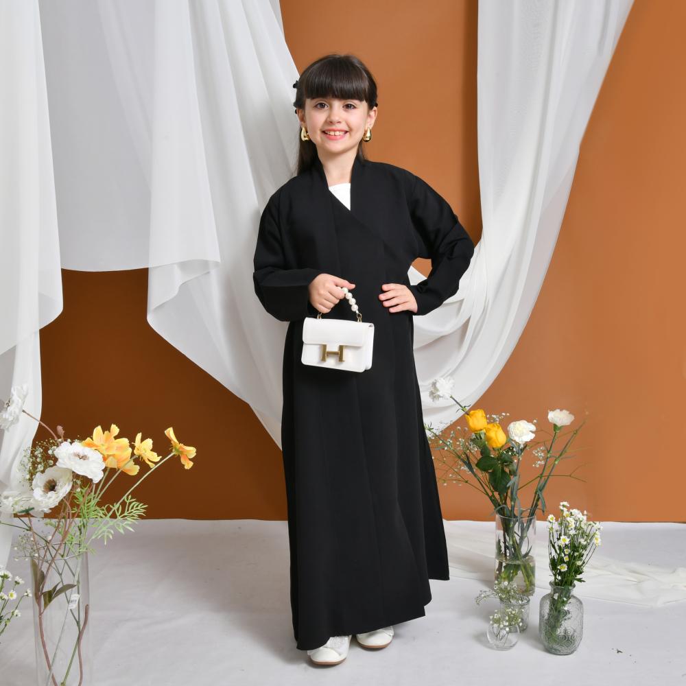 عباية سوداء تصميم رسمي بقطعة جانبية تغلق بطقطق
