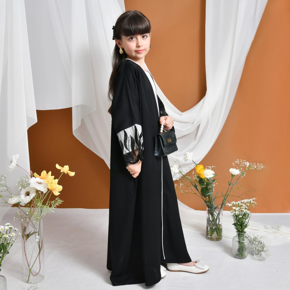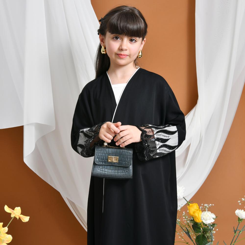 عباية سوداء ربع بشت بأكمام دانتيل راقية