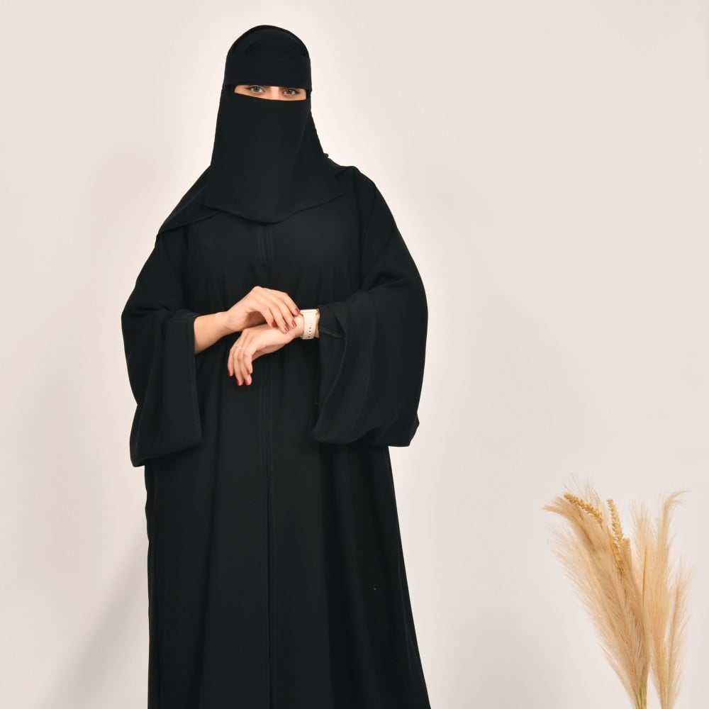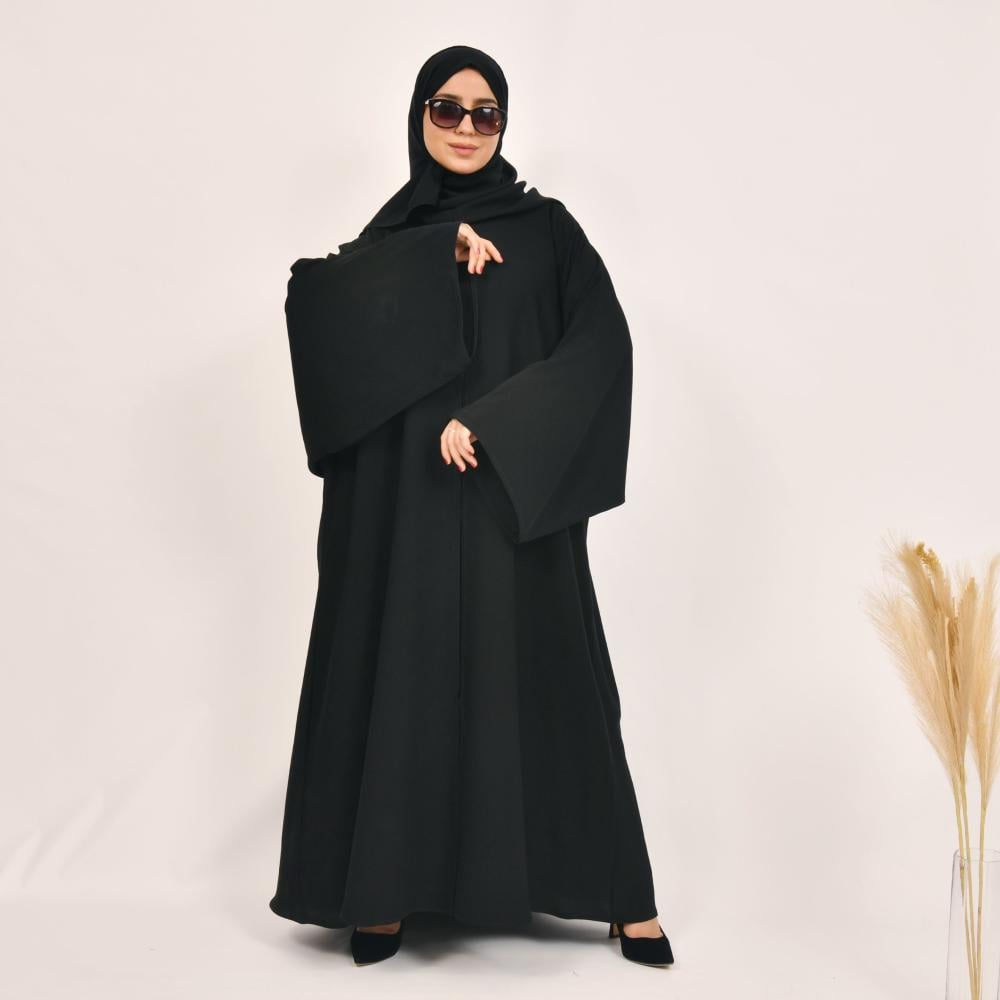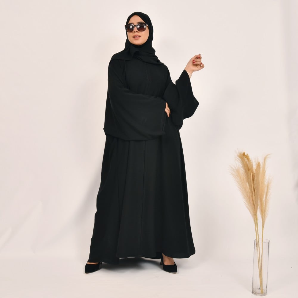 عباية سوداء بأكمام واسعة ومغلقة بطقطق