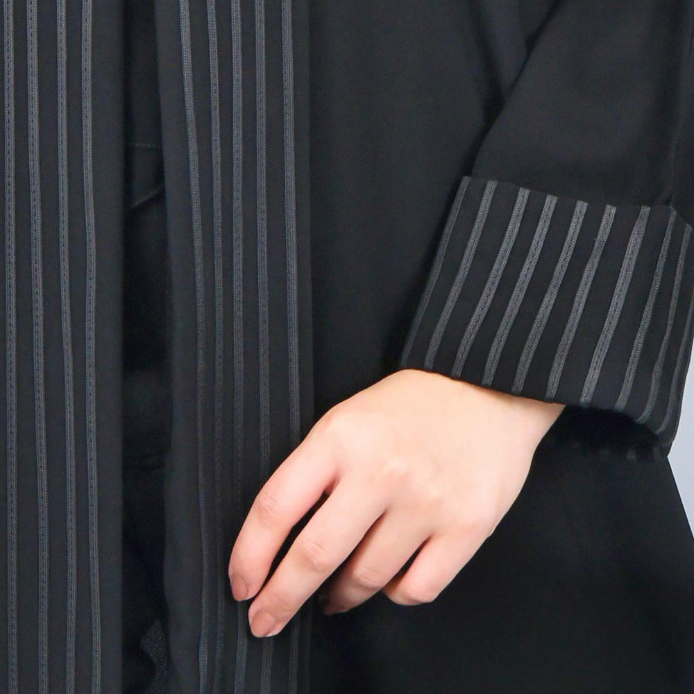 - التصميم: عباية مفتوحة بياقة طويلة مقلمة
