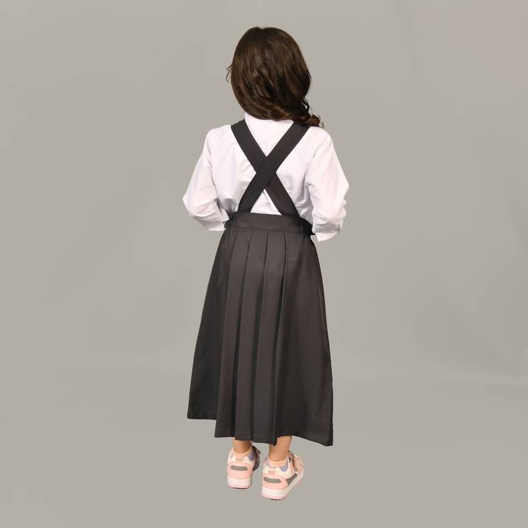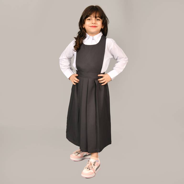 اجعلي طفلتكِ تتألق بأناقة وراحة في الروضة مع مريولنا الرمادي الداكن المصمم بفتحة عنق مستديرة وخصر مزموم وكسرات. مصنوع من أقمشة فاخرة وبخياطة متقنة لضمان الراحة والمتانة.