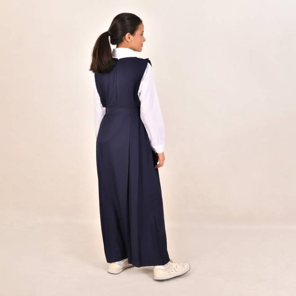 يتميز مريول ثانوي كحلي بقصته الواسعة والمريحة، مما يسمح بحرية الحركة طوال اليوم دون أي ضيق. و يأتي طويل حتى الكاحل و بلون كحلي لا يظهر ما تحته.