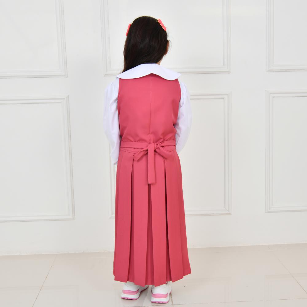 مريول وردي بحزام عريض مزين بفيونكة وكسرات مع جيوب جانبية